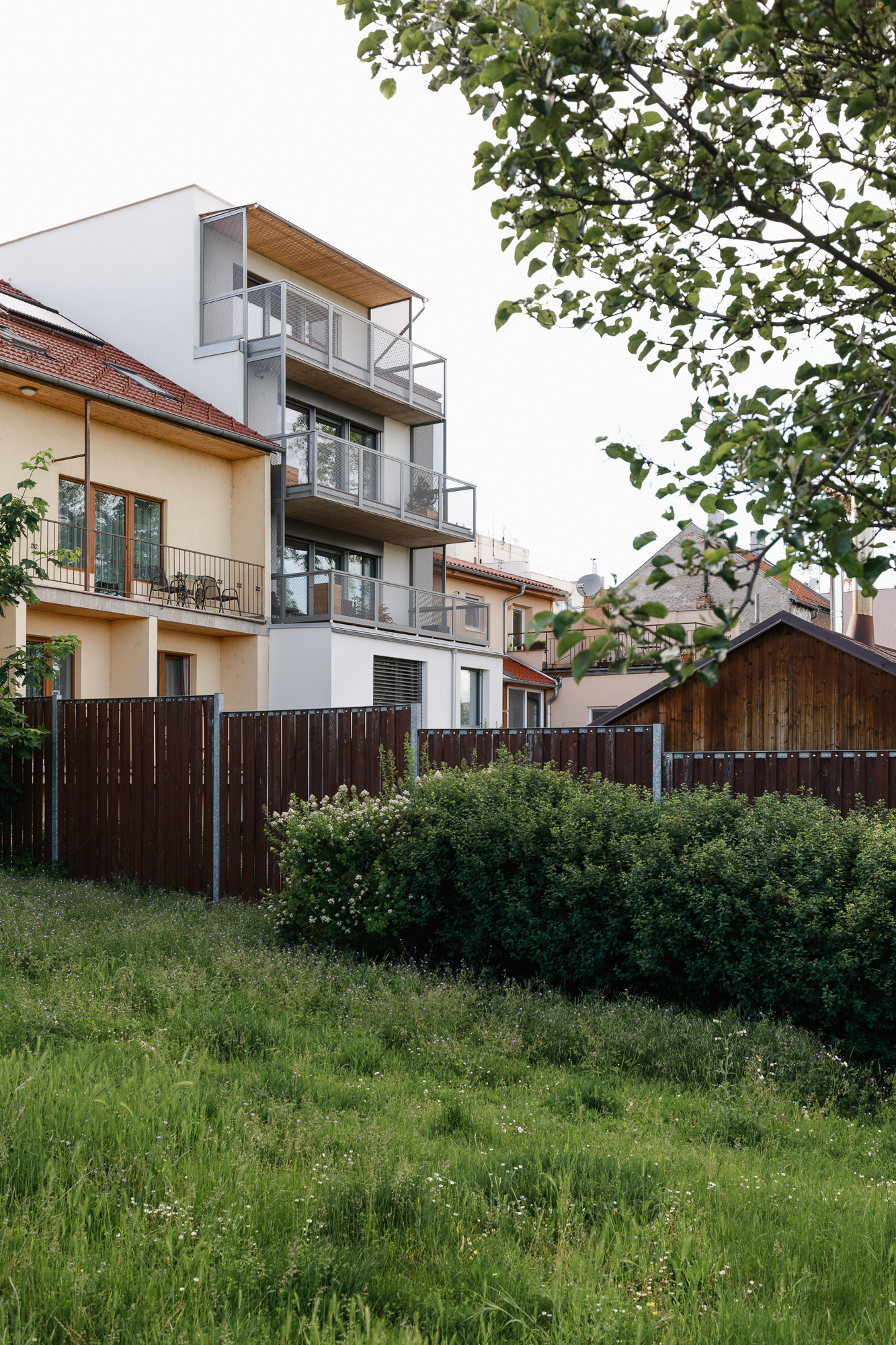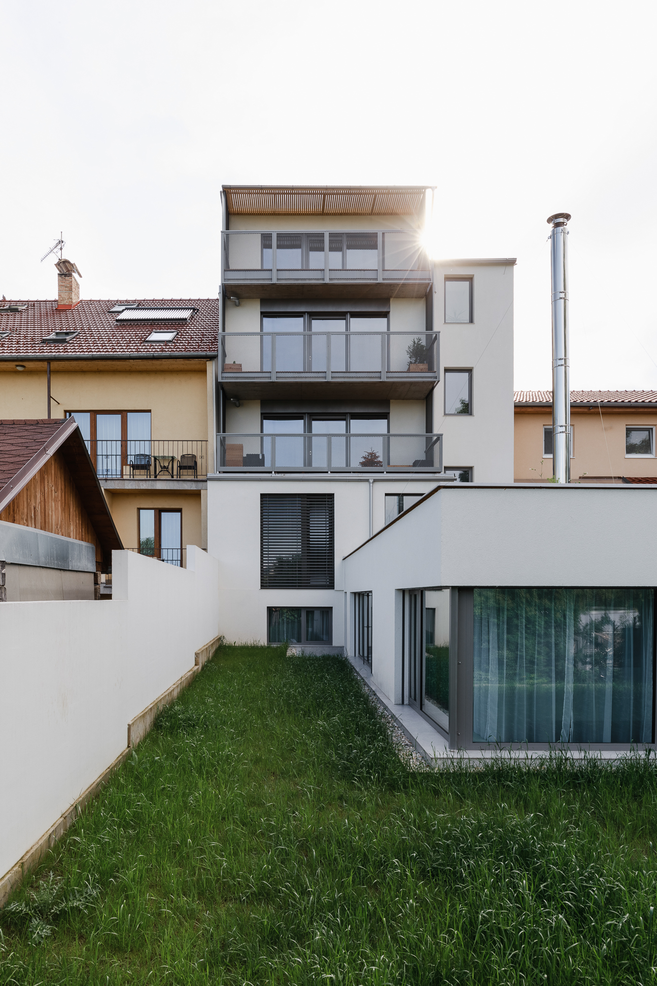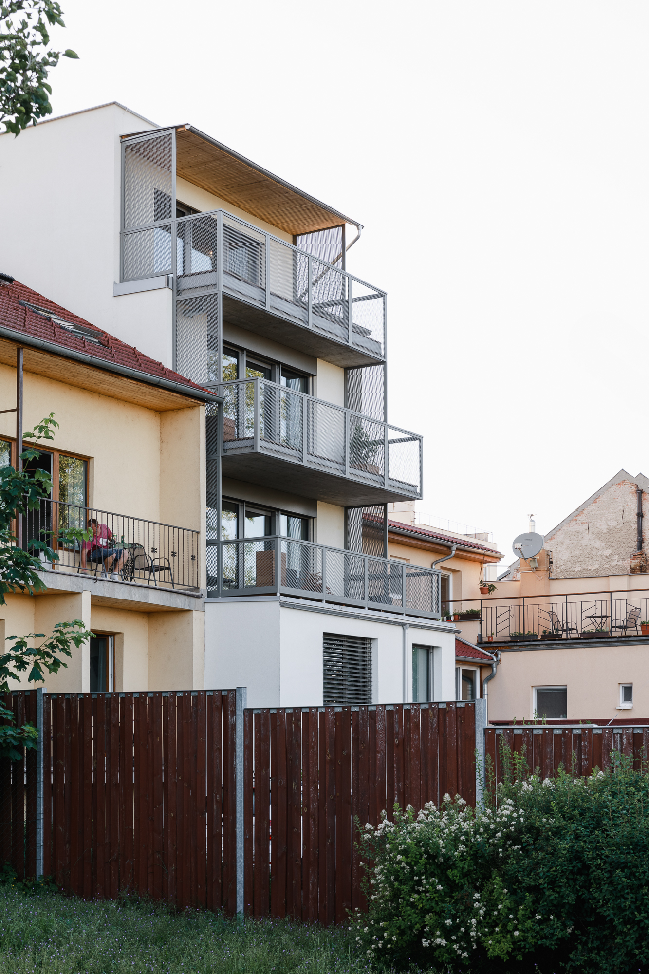 Naplnění potenciálu proluky v řadové zástavbě dolního Králova Pole. Funkční dispozice v běžných podlažích, v zahradním i střešním apartmánu. Každý byt má svůj venkovní prostor terasy, balkónu nebo zahrady a tak je to správně:)