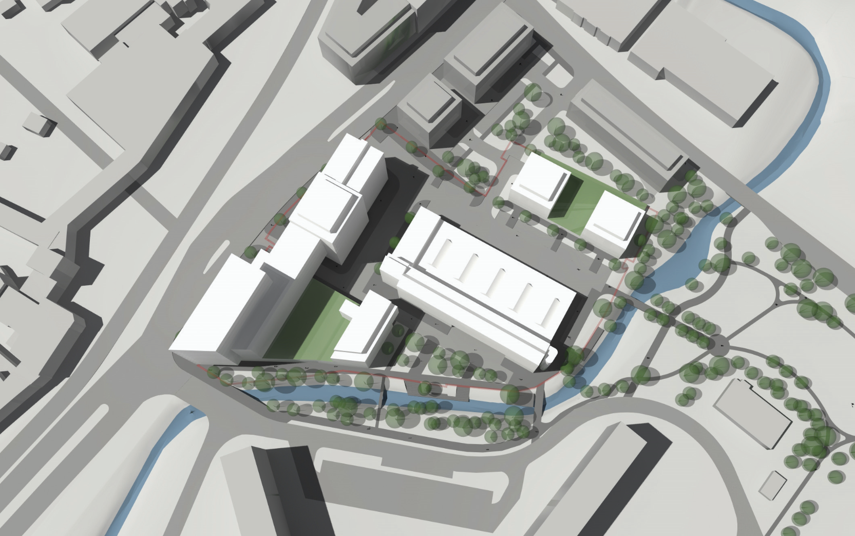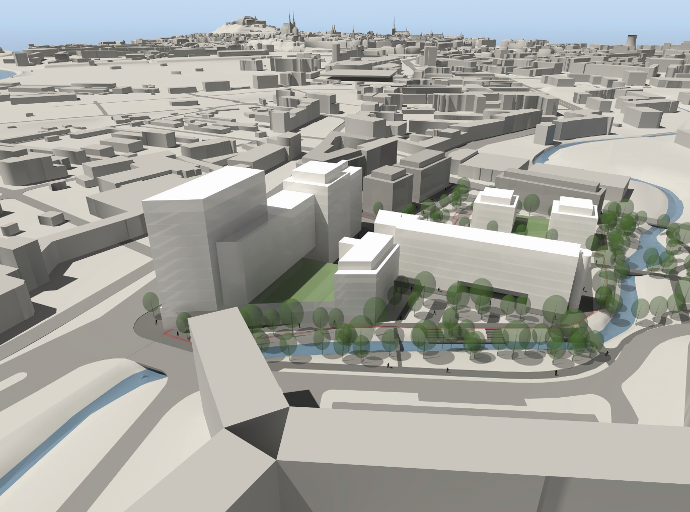 • Studie proměny bývalého průmyslového areálu na pestrou součást města. Kanceláře, bydlení, obchody, volný čas. Využití nejnovějších trendů v hospodaření s energiemi i vodou při zohlednění reálné ekonomiky a požadavku klientů.